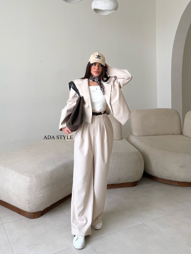 کراپ کت و شلوار زنانه در جنس کرپ هایتوییست مدل اسنا