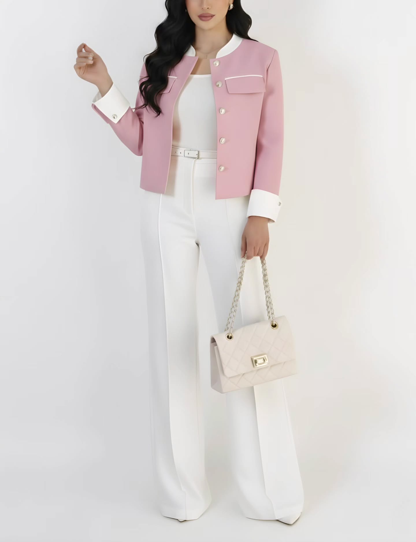 کت و شلوار زنانه در جنس کرپ باربی مدل ناز گل
