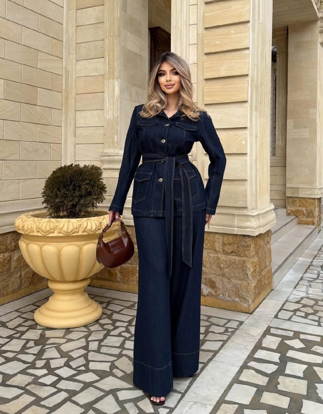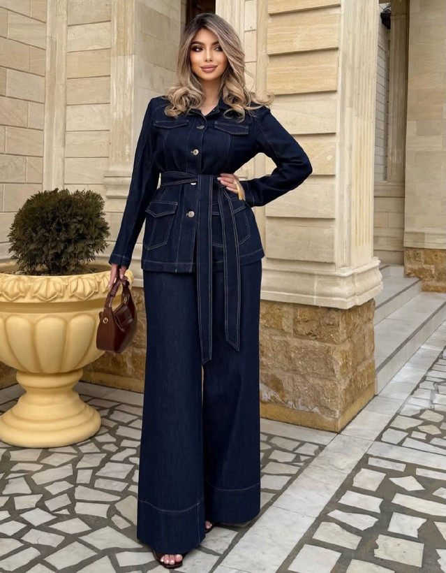 ست کت و شلوار زنانه در جنس جین مدل کوثر