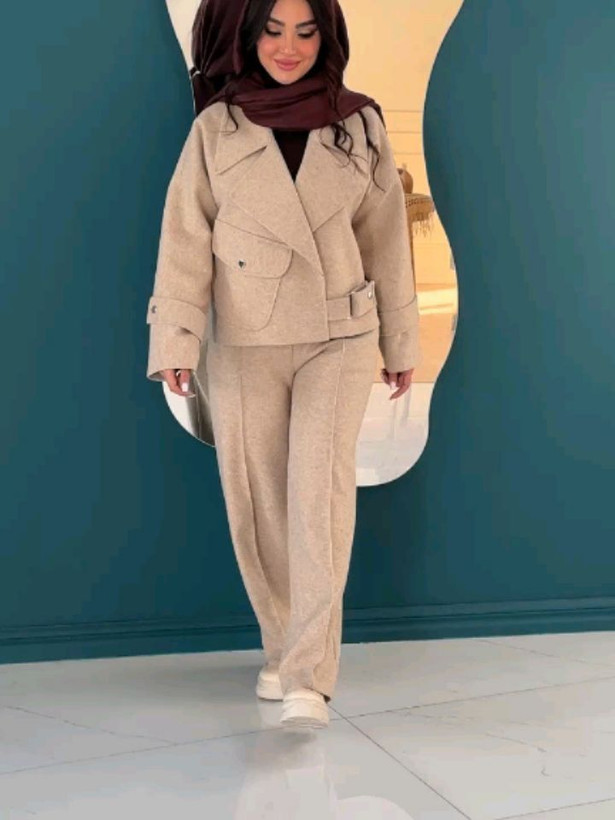 کت و شلوار فوتر کرم و جذاب ،استایل زمستونی رو به اول بالاتر میرسونه،🔥❄️