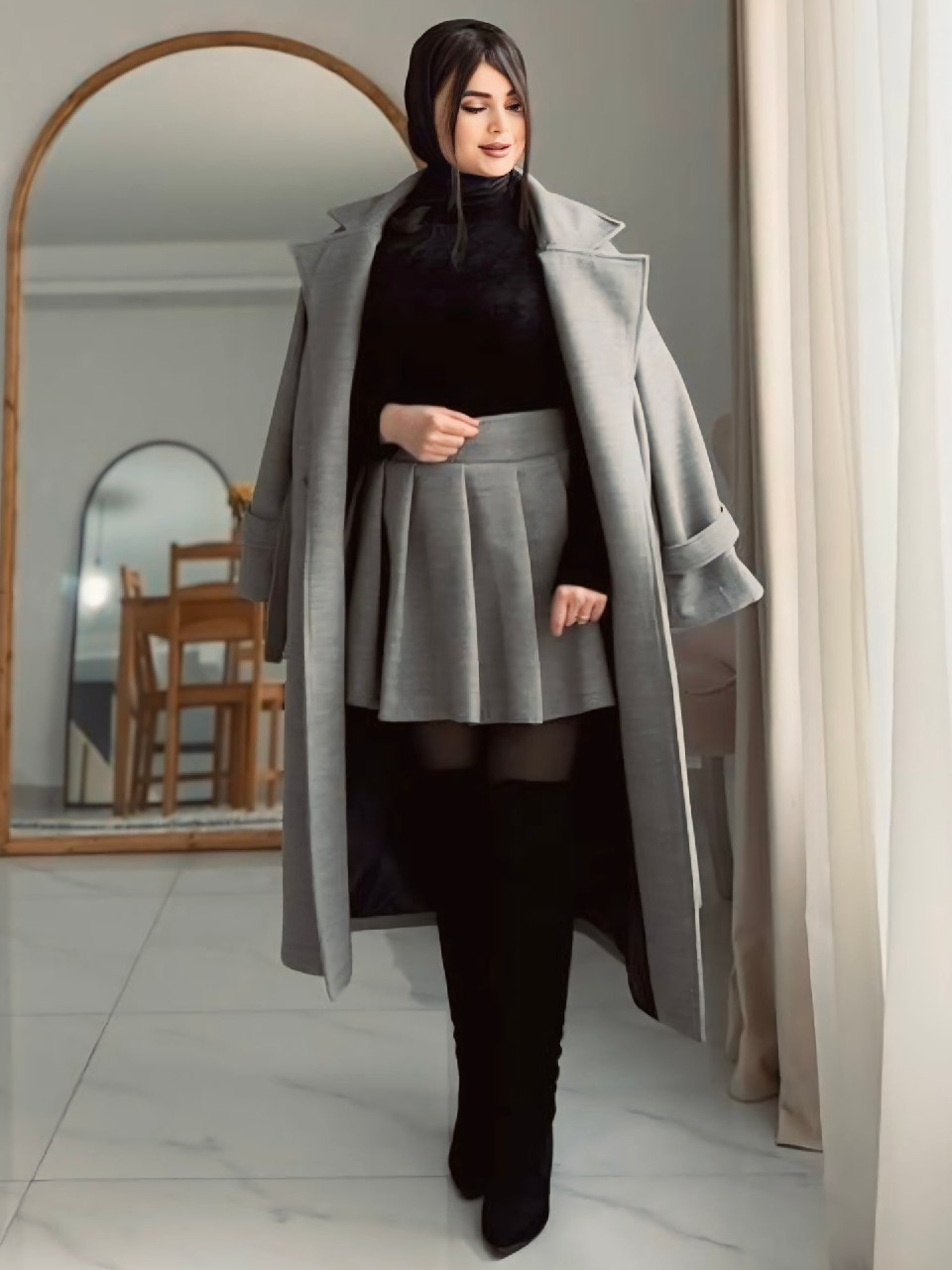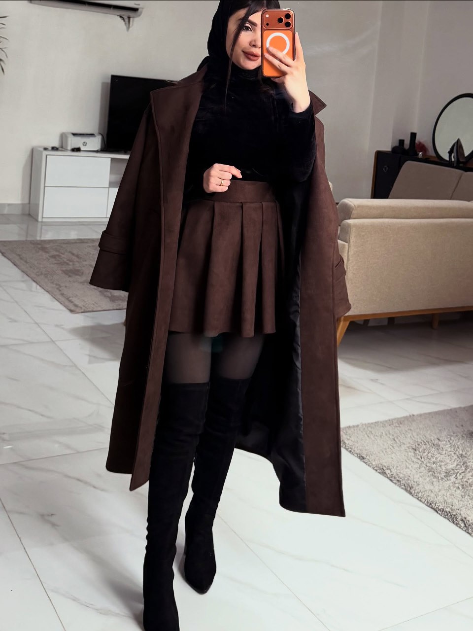 ست پالتو و دامن زنانه در جنس فوتر کوبیده دورو اورجینال 🇹🇷 مدل جیران