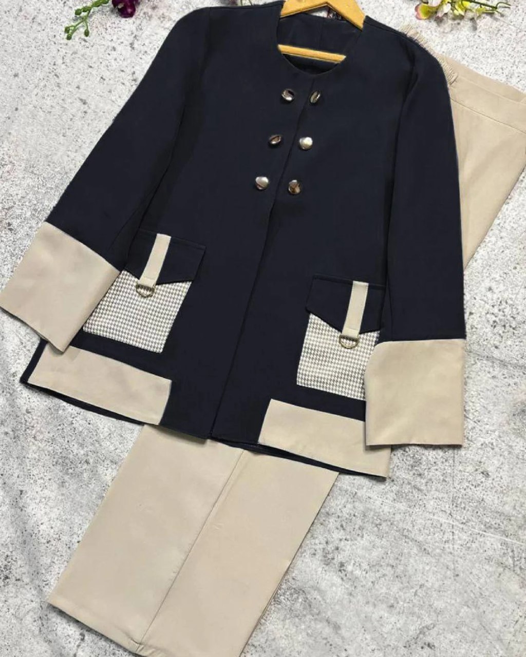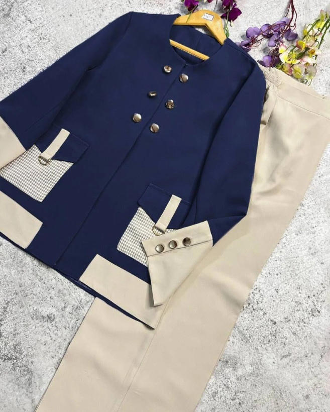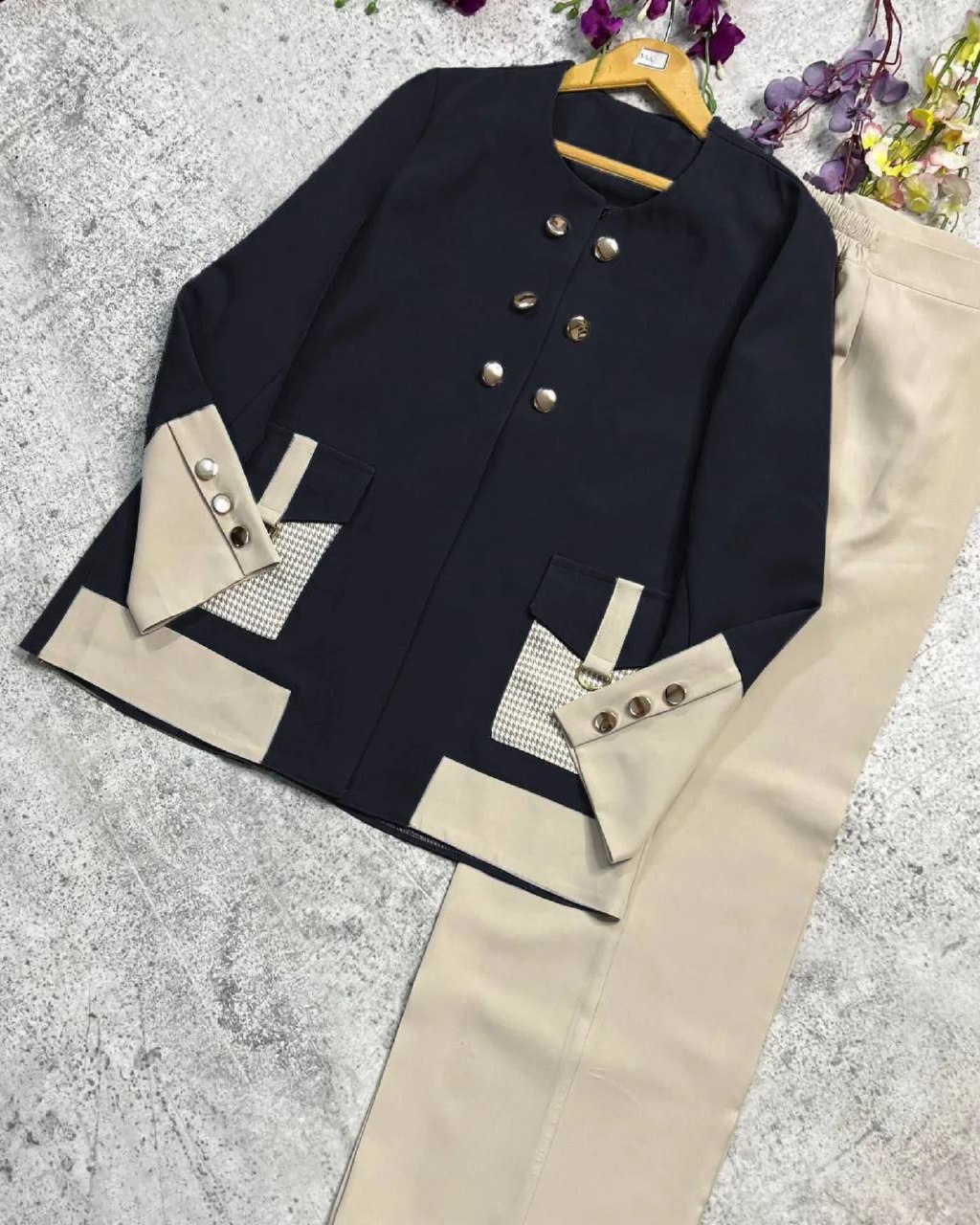 کت و شلوار زنانه در جنس کرپ هایتوییست مدل پاپیتال