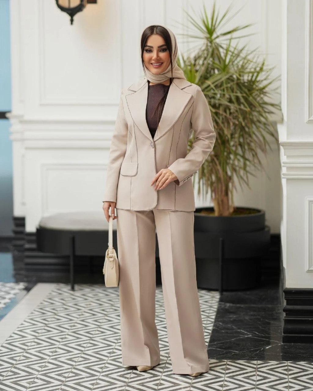 ست کت و شلوار زنانه در جنس کرپ هایتوییست مدل سیتا