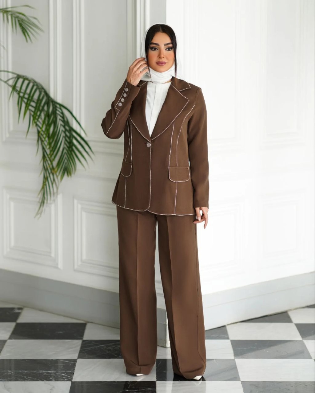 کت و شلوار زنانه مزونی در جنس کرپ هایتوییست ،مدل میخک