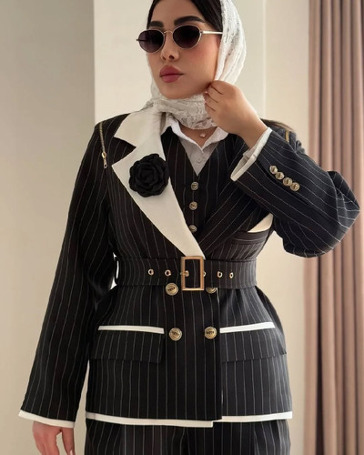 کت و شلوار زنانه مزونی در جنس کرپ هایتوییست ،مدل میخک